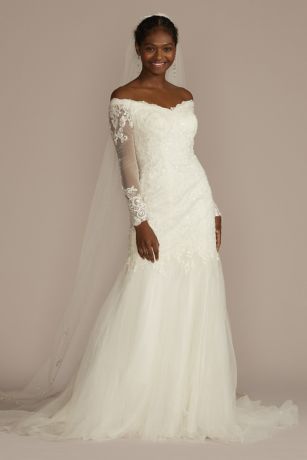Long Sleeve Off The Shoulder Petite Wedding Dress David S Bridal
